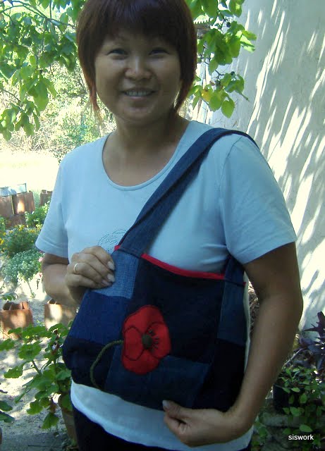 Még a nyár közepén történt ,hogy szomszédom gyönyörű körmöket varázsolt a nagylányomnak és cserébe egy táskát kért.Most végre elkészült.Hulladék farmer anyagokat használtam fel szintén Oxana kívánságára.